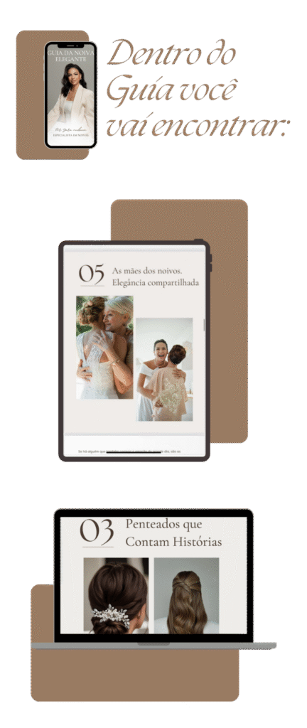 E se você tivesse um guia completo, feito por uma especialista em noivas, que te conduzisse em cada passo desse processo com segurança, clareza e elegância?
